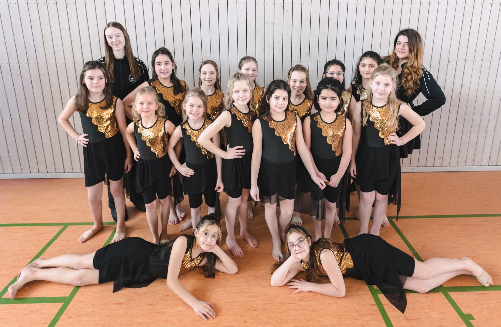 Diese Gruppe ist für Kinder, die bereits tänzerische Erfahrung (JMD, Ballett, Hip-Hop o.ä.) haben. Langfristig soll am Turnier-Betrieb teilgenommen werden.